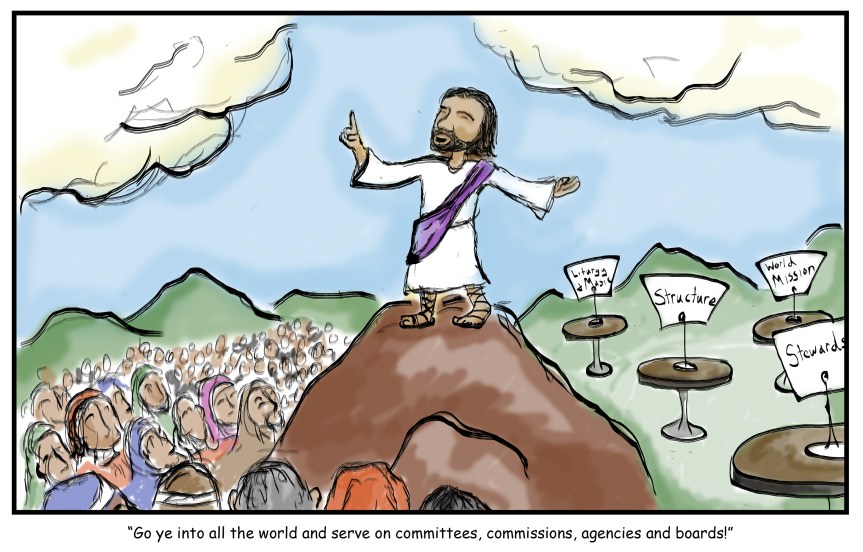 Today, we stand atop a mountain of golden cups looking out upon so many tasks forces and committees and interim bodies and what-nots and wondering to ourselves, which one of these actually works? For this triennium alone, by today’s count, we have resolutions to establish 8 new staff positions, 25 new task forces, another Standing Commission or 2, and 11 other committees, boards, and bodies to help study, guide, and govern our church. That’s on top of the myriad other groupings of good Episcopal folks already at work as the result of previous gatherings of General Convention.