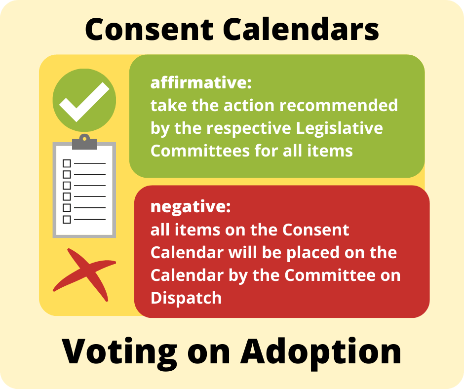 Negative Vote: If the House rejects the Consent Calendar, all items on the Consent Calendar will be placed on the Calendar by the Committee on Dispatch. Ruh-roh!